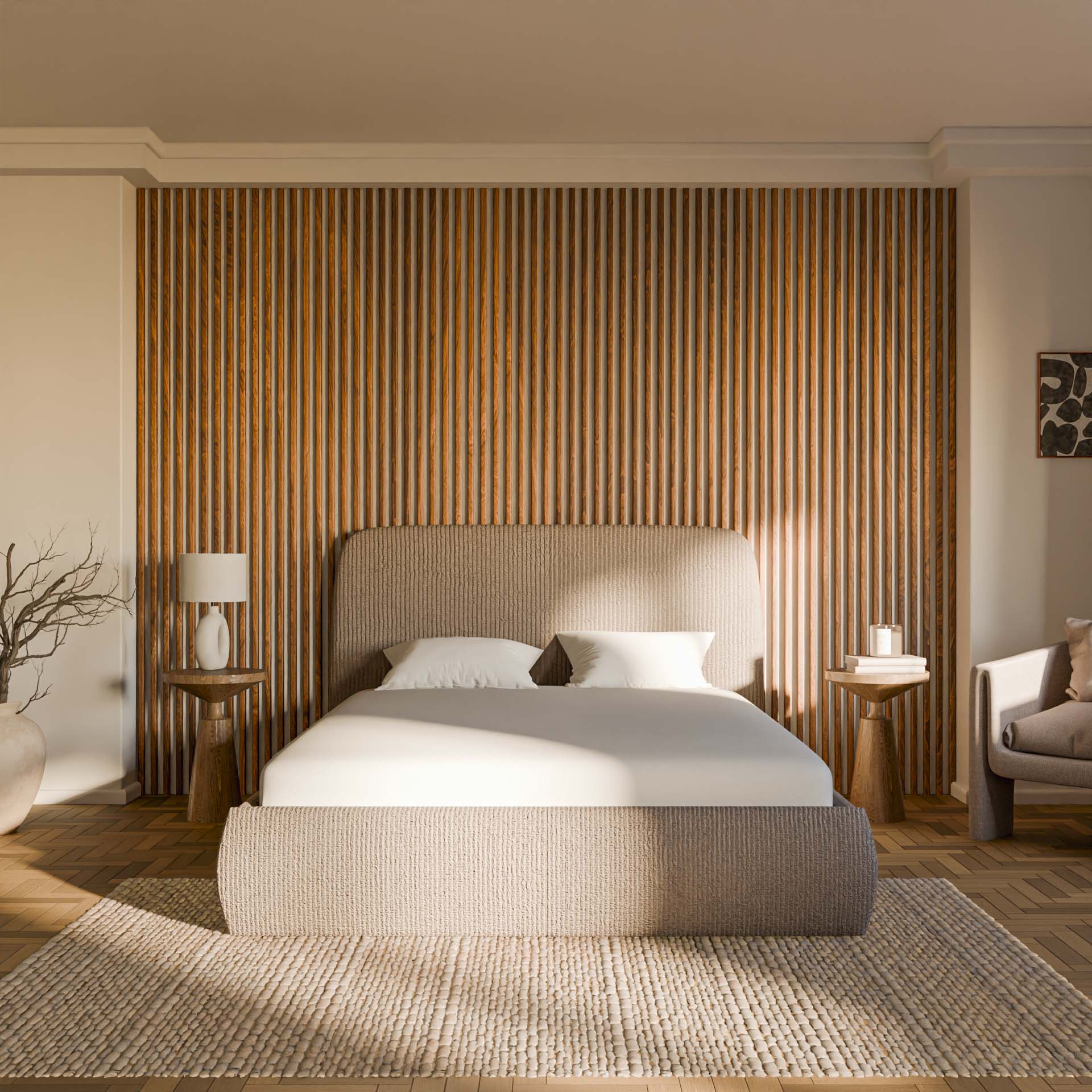 Notre tête de lit incarne le raffinement à l’état pur, alliant un design épuré et sophistiqué à une praticité remarquable. Profitez d’un confort ferme et accueillant grâce à son garnissage en ouate, idéal pour vos moments de détente en position assise. Habillée d’un tissu d’ameublement hypoallergénique, doux et respirant, cette tête de lit ne se contente pas de rehausser le style de votre chambre : elle prend aussi soin de votre bien-être.