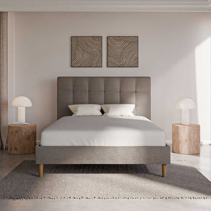 Notre sommier est recouvert d'une housse chic en tissu d'ameublement, à la fois respirant et doux au toucher. Le garnissage ouatiné offre une finition impeccable, ajoutant une touche de sophistication à votre chambre.